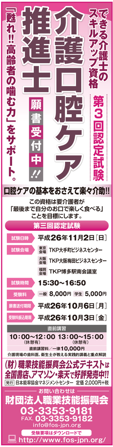 第3回介護口腔ケア推進士 認定試験詳細を、