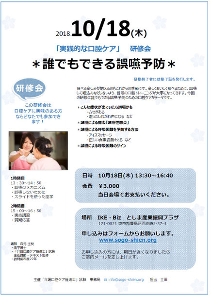 ■講 師:森元 主税(歯学博士・「介護口腔ケア推進士」試験監修)